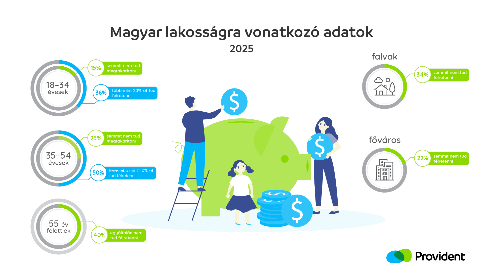 Az elmúlt években tapasztalt jövedelmi és vagyoni egyenlőtlenségek miatti frusztráció, valamint az infláció kiugró mértéke jelentősen növelte a társadalmi szakadékot. A Provident Pénzügyi Zrt. anyavállalatának (International Personal Finance - IPF) megbízásából készült, 9 Provident országra kiterjedő reprezentatív kutatás szerint a magyar lakosság csaknem fele (47,7 százalék) legfeljebb jövedelme 20 százalékát tudja félretenni hónap végén. A helyzet különösen aggasztó azok esetében, akik teljesen megtakarításképtelenek: jelenleg a válaszadók 27,1 százaléka fizetéstől fizetésig él és egyáltalán nem tud félretenni. Ez az arány folyamatosan emelkedik: 2022-ben még „csak” 21,1 százalék volt, 2023-ban és 2024-ben ez már meghaladta a 25 százalékot, idén pedig elérte a 27,1 százalékot a megtakarítani képtelenek aránya. Nemzetközi összevetésben is látványosak a különbségek: míg a Provident más európai piacain – Lengyelországban, Csehországban és Romániában – átlagosan 18,6 százalék nem képes megtakarítani, a négy ország közül nálunk a legrosszabb a helyzet.
