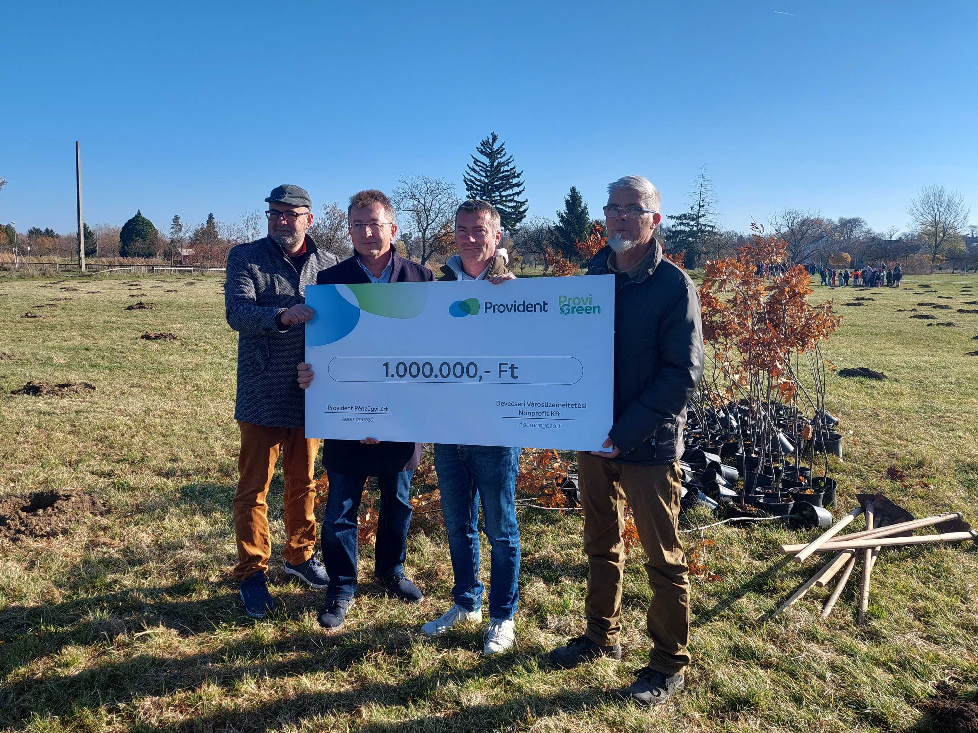 Devecser, 2025. november 6. – Tizenöt évvel a vörösiszap-katasztrófa után a Provident Pénzügyi Zrt. közösségi faültetéssel járult hozzá Devecser zöldítéséhez. A vállalat fenntarthatósági programja, a ProviGreen keretében a pénzintézet egymillió forinttal támogatta a város zöldterületeinek fejlesztését.