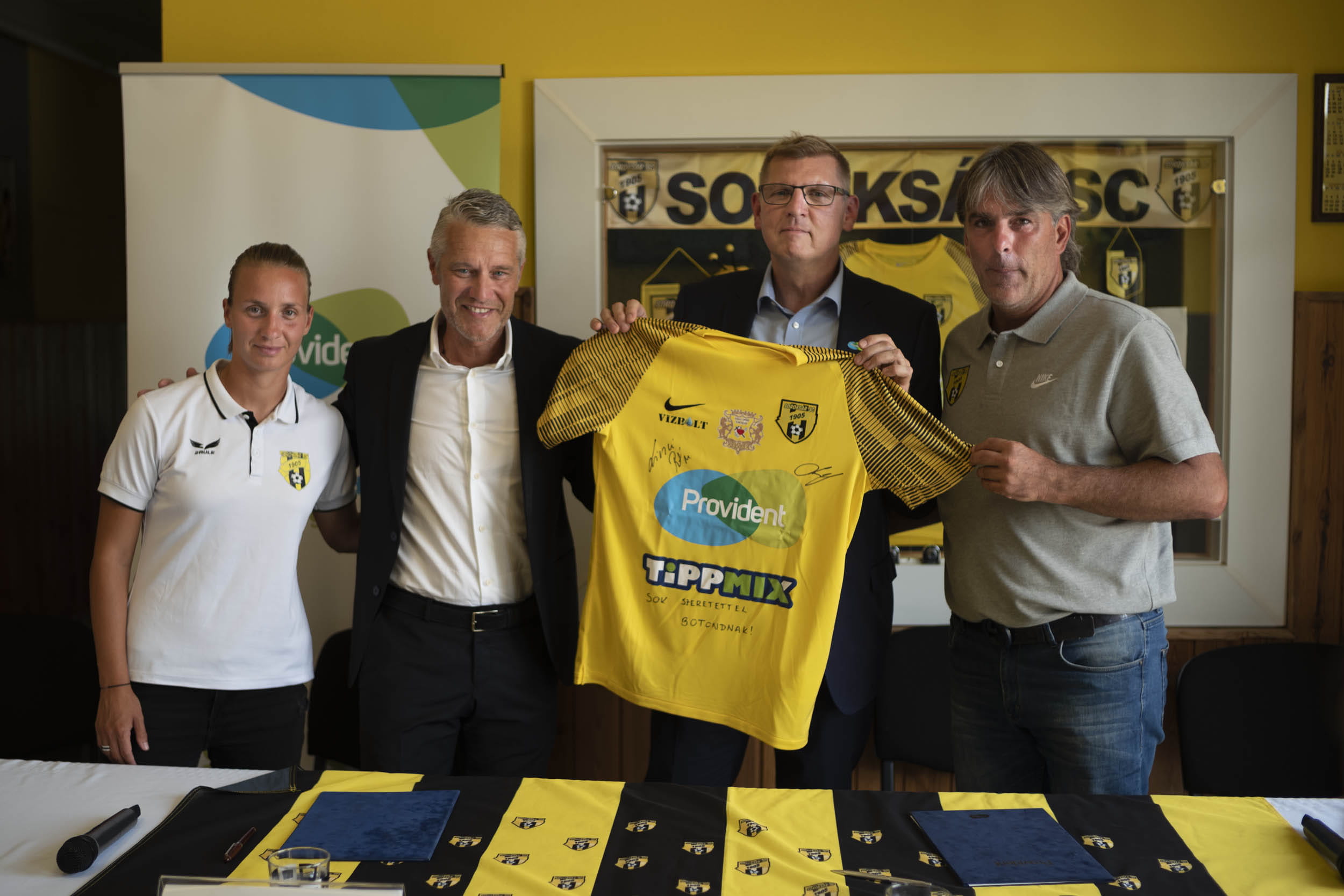 Budapest, 2023. augusztus 28. – Új szponzorral bővült a Soroksár SC támogatói köre a Provident Pénzügyi Zrt. révén. A pénzügyi szolgáltató nettó 50 millió forint összegű támogatást nyújt 2024. június 30-ig a sportklub férfi és női felnőtt labdarúgócsapatának. Az ennek bejelentéséről szóló sajtótájékoztatón felszólalt Szűcs Mihály, a klub ügyvezetője, valamint Szirmák Botond, a Provident Pénzügyi Zrt. vezérigazgatója is.
