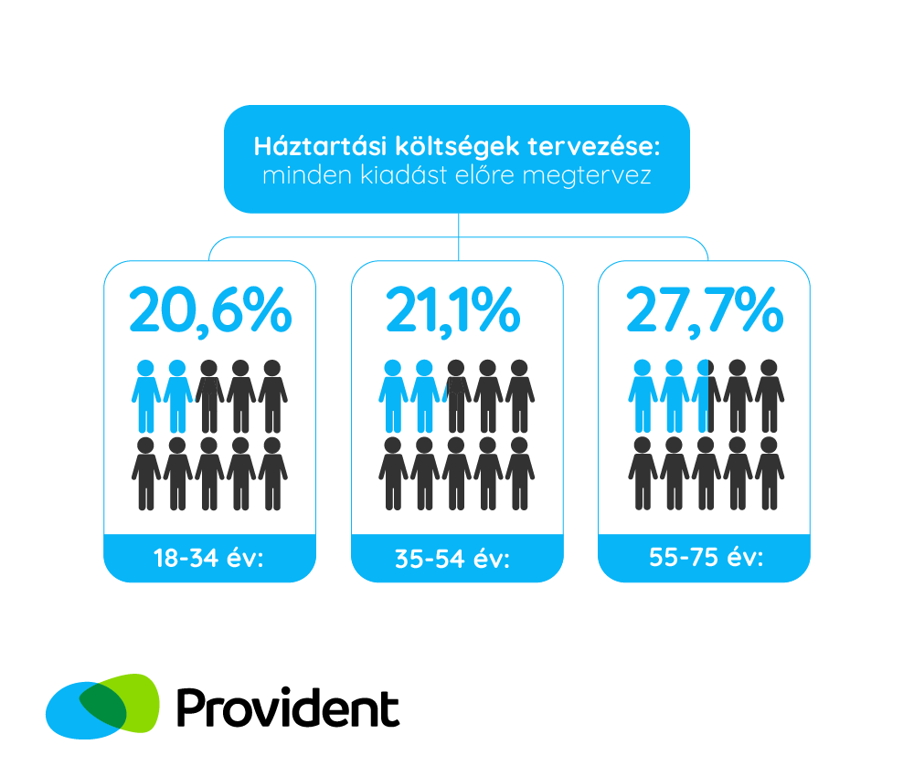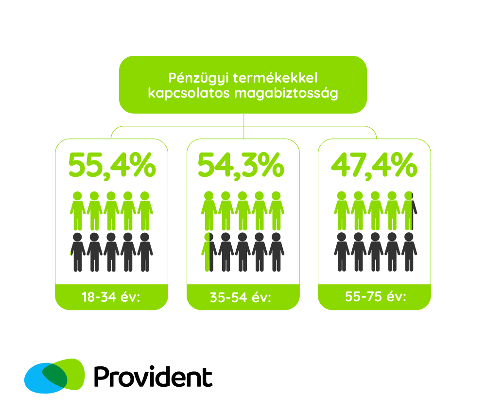 A Provident Pénzügyi Zrt. anyavállalata, az International Personal Finance (IPF), megbízásából 2024 júniusában készített reprezentatív kutatásból is kiderül, hogy a 18-34 évesek 20,6%-a minden kiadását előre megtervezi, ami alig marad el a 35-54 éves korosztály 21,1%-os arányától. A 18-34 évesek 38,6%-a minden hónapban, de legalább rendszeresen tesz félre valamennyit megtakarítás céljával. A megtakarítások leggyakoribb célja továbbra is lakásvásárlás vagy felújítás, ezt a fiatalok 40,7%-a jelölte meg prioritásként. Emellett 32,8%-uk utazásra és kikapcsolódásra fordítaná a félretett pénzét. A válaszadó 18-34 évesek több mint 40%-a, hitelfelvétel esetén legfontosabb szempontként a kamatlábat és a havi törlesztőrészlet jelölte meg, de 7,2%-uk számára a kényelmi szempontok szintén fontos tényezők, míg 6,3%-uk különösen fontosnak tartja a könnyen kezelhető mobilalkalmazást. A kutatásból az is kiderül, hogy a korosztály 55,4%-a magabiztosnak érzi magát a pénzügyi termékekkel és szolgáltatásokkal kapcsolatos ismereteiben.